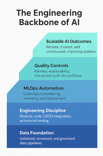 AI systems are fundamentally different from traditional software—they’re adaptive, data-dependent, and continuously evolving. This complexity introduces challenges that only strong engineering can manage: